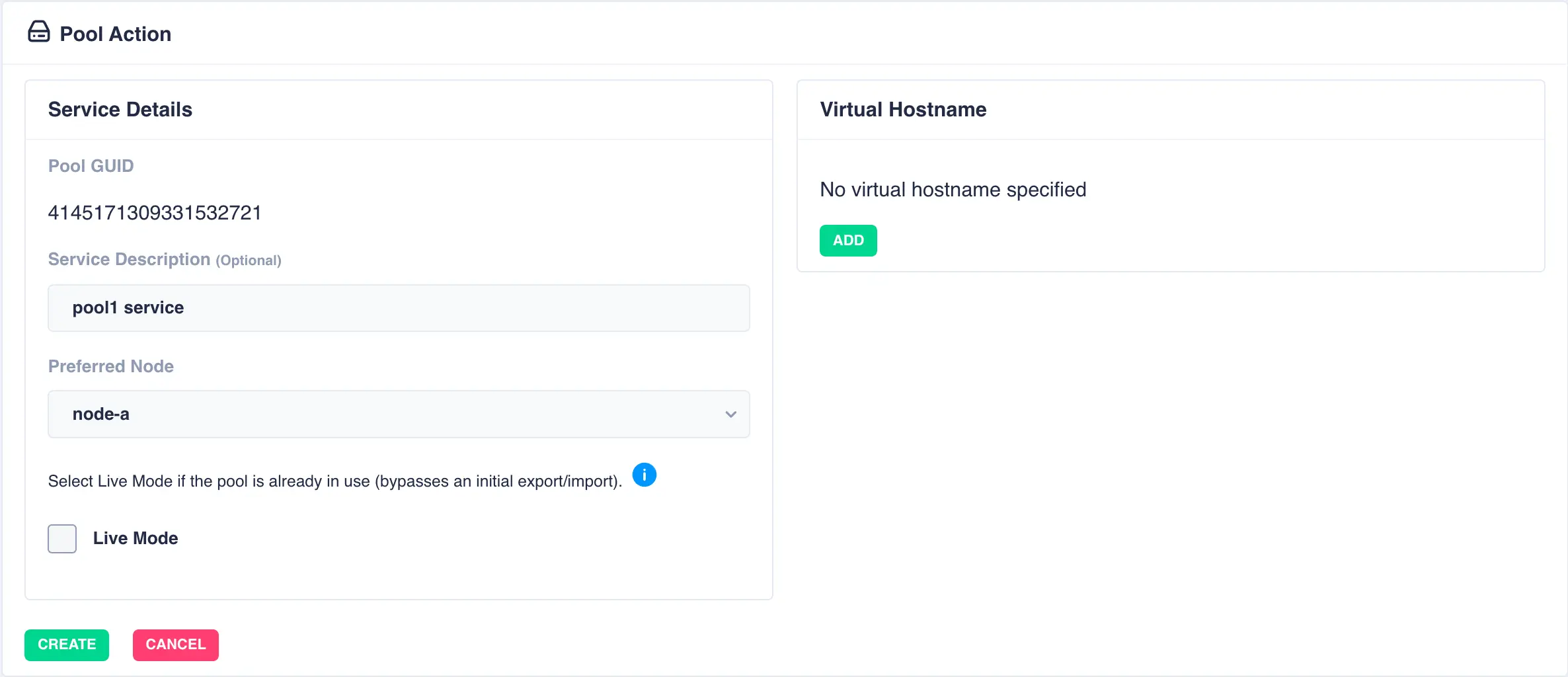 in the main pools page ready for clustering. The configuration of the pool can be checked by clicking the
