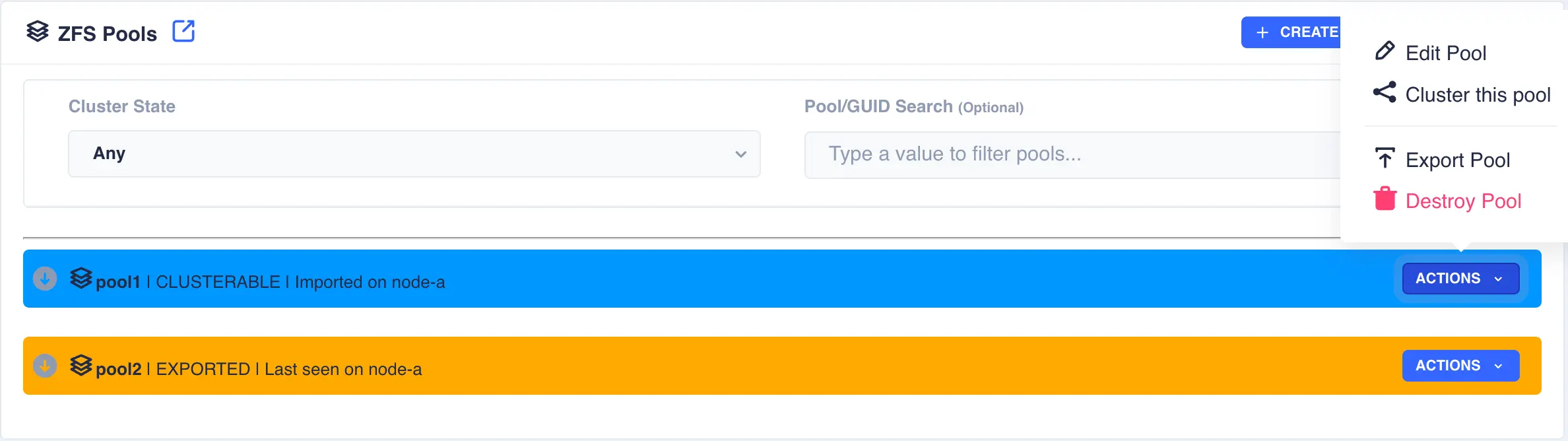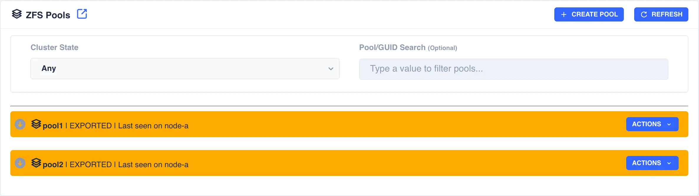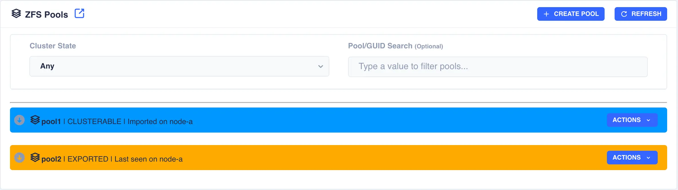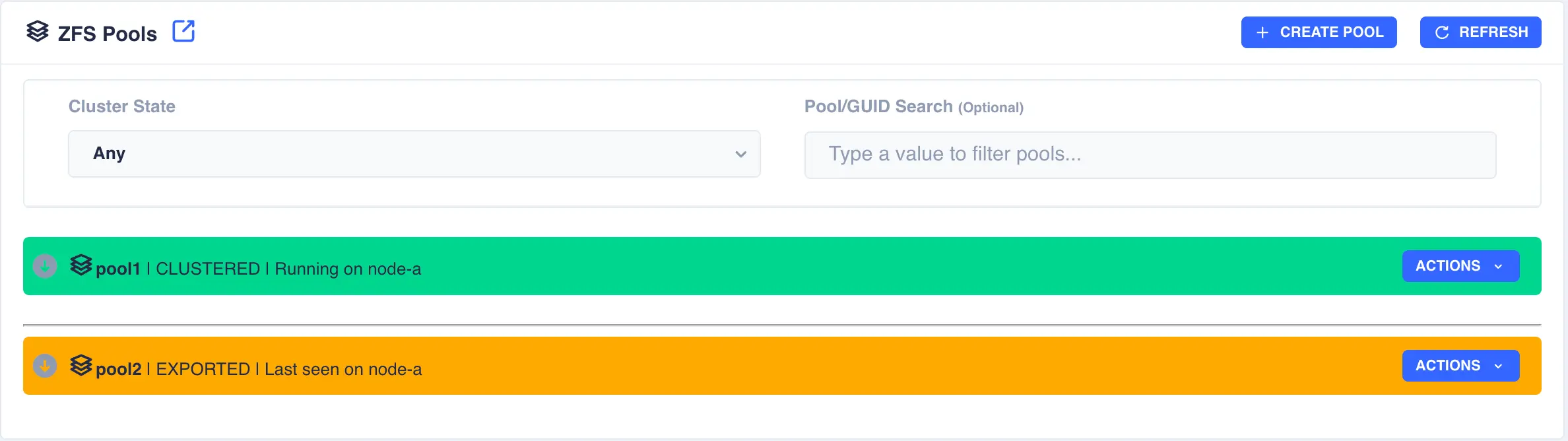 clustered. Check pool import/export status by navigating to ZFS -> Pools from the