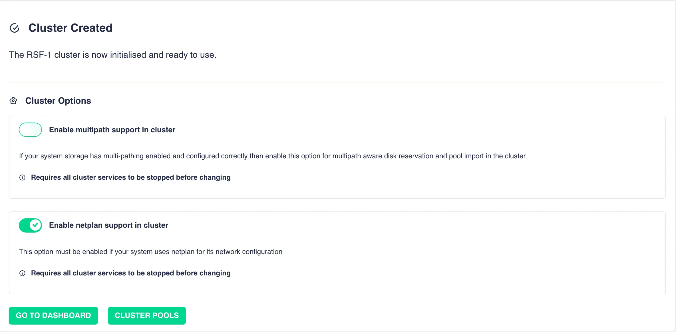 This completes basic cluster configuration.
