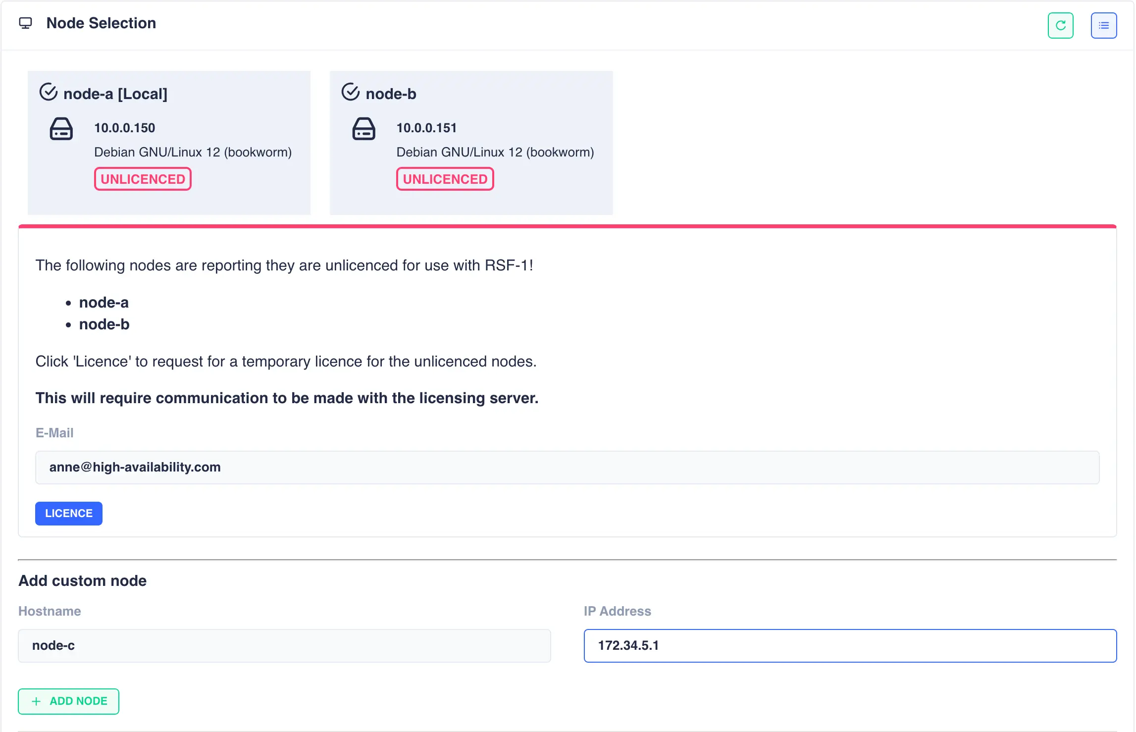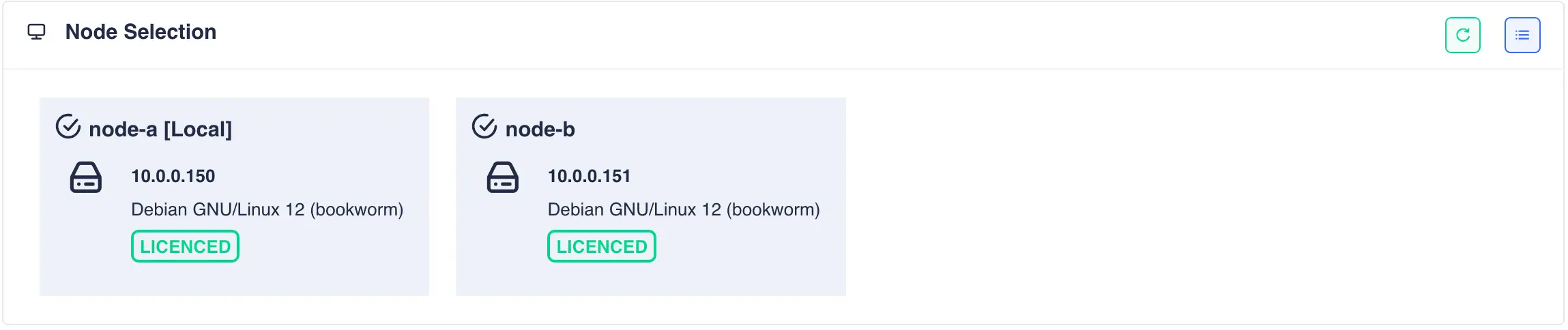 Once the licensing process has completed click the refresh button on the node selection panel to update the license status: